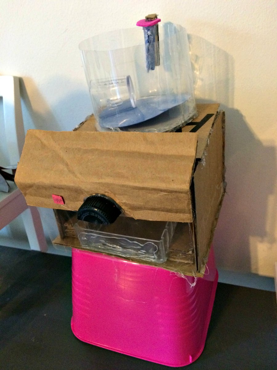 This is a dishwasher and sink combo. The sink is on top of the dishwasher because she is running out of room in her doll house! Notice the handle. It’s not perfect, but she loves it!