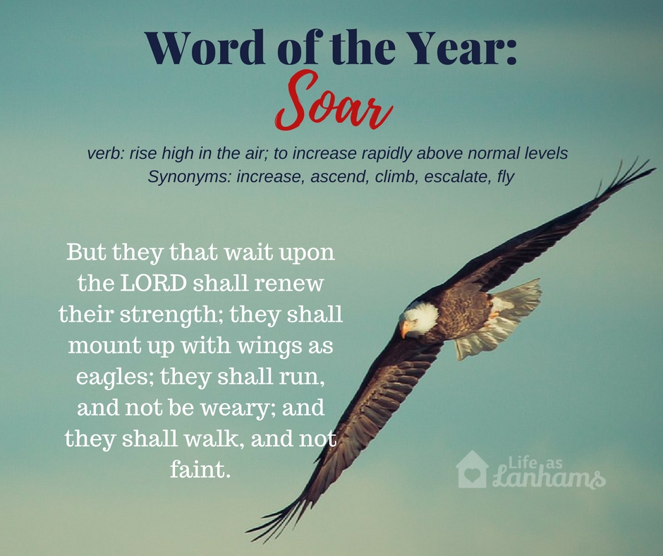 I have chosen a word that I want to envision for my life in 2017. One that encompasses every facet of my life. Spiritual, emotional, relationships, money, homeschool, business. Everything. I want everything to be affected by this one word. So my word for 2017 is soar.